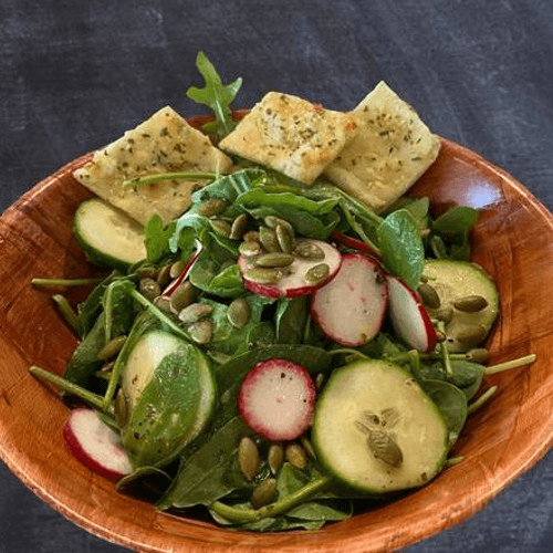 Assorted greens, agave white balsamic vinaigrette, and pepitas
